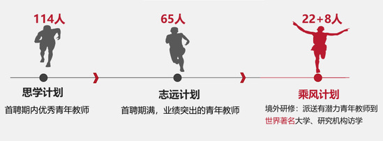 学校厚植人才成长成才沃土,实施校内青年教师培养的“思学计划”“志远计划”“乘风计划”,构建覆盖教师发展不同阶段的“阶梯式”培养体系,助力青年教师成长成才,努力让更多“千里马”在建设特色显著的一流理工科大学的征程中竞相奔腾。管理学院赵靖老师博士毕业进入金沙官网工作,先后受到“思学计划”“志远计划”“乘风计划”的持续资助,短短几年内已成长为教授、博导,并获批“国家优青”。校内培养“三大计划”实施至今,学校共资助青年教师200余人,青年科技创新人才培养成效逐年显现。十年来,青年教师获批国家级人才计划13人次,获批省部级人才计划超过200人次。