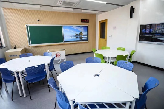学校超前布局,2019年将第一教学楼改造成为智慧教室,改变了传统的教学模式,使课堂的形式更加多样化,也将老师们从传统的授课过程中解放出来。尤其在疫情防控的特殊时期,智慧教室发挥了重要作用,教室内部配置的实时录播系统、交互大屏与远程物联设备等,为线上线下相结合的混合教学模式提供了空间和技术支撑,确保了“停课不停教”“停课不停学”。2020年暑期,学校又在卓越楼和国合楼建设了新的智慧教室,截至目前,学校智慧教室已达155间。加上正在维修的第四教学楼和2023年年底新建成的第三教学楼,主校区不仅将告别教室紧张、排课困难的尴尬局面,智慧教室也将迎来大幅扩容,将为提升人才培养质量持续赋能。