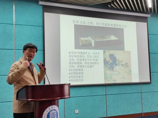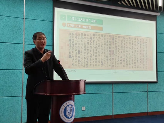 在嘉宾主题演讲环节,汪涌豪教授以“理工科高校的审美教育更须突出人文维度”为题发表演讲,他提出在理工科高校推进美育教学更须回归美育的本义,实现感性的伸张和理性的解放,使生物的人发展为社会的人并最终成为更和谐健全的全面发展的人。王勇教授以“念念不忘,必有回响——美育音乐教育传播案例分享”为题,回溯了他做音乐美育多年来的成功案例,从实证的角度验证了美育对于涵养人的心灵、提升人的精神境界方面有着不可替代的作用。杨志刚教授以“艺术与科学如何在山顶相遇——以艺术博物馆的美育涵养为讨论重点”为题,论证了博物馆在培育和提升社会审美能力方面不可或缺的作用,而美育不仅仅关乎“美”,还关联“真”和“善”,推动着艺术和科学整体、和谐的发展。张生泉教授以“守正创新、形神兼备——为培养中国式现代化事业建设者而努力”为题发表演讲,他从“向善敬畏、向美而行的育人理念”、“形神兼备、知行合一的育人路径”、“强国有我、不辱使命的育人态度”三个角度论述了戏剧美育这种形式在培养新时代高素质建设者方面的独特作用。张卫东以“小议书法美学”为题,用结合书法作品赏析的方式,论述了书法这一艺术门类在浓缩历史人文、寄寓创作情感、实现审美共情方面的重要作用。