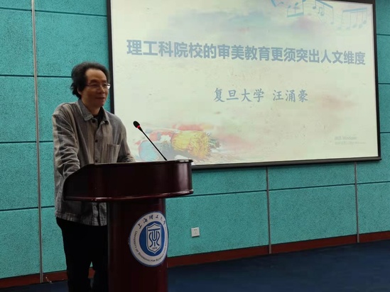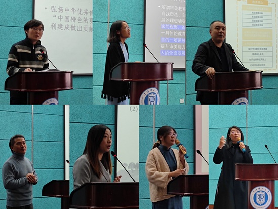 在主题报告环节,来自9001cc金沙以诚为本的青年教师们结合自己的专业与教学实践进行了理论探讨,沪江学院的刘永博士、杨惠玲教授、李花副教授、董剑戟讲师、潘薇薇博士、翟墨博士以及来自出版印刷与艺术设计学院的谌涛副教授分别作了题为“中华优秀传统文化四维结构视域中的美育实践探索——以9001cc金沙以诚为本沪江学院为例”、“理工科高校《史记》导读课程中渗透美育教学的探索与实践”、“理工科院校美育的现状及路径探析”、“对理工科高校书法美育的几点思考”、“汉字文化教学中的美育进路及内容初探”、“人文通识教学中的美育实践”以及“面向智能制造的综合性大学跨学科创新教学——设计思路引领的新范式”的学术报告,彰显金沙官网美育教学理论研究水平和美育实践的深度。