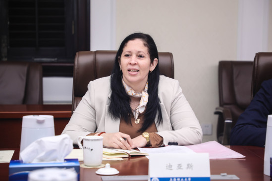 11月10日上午,古巴驻沪总领事迪亚斯(Mileidy Aguirre Díaz)携古巴哈瓦那大学常务副校长席尔瓦(Dionisio Zaldivar Silva)等访问金沙官网。校长丁晓东在思晏堂会见了迪亚斯一行,会议由副校长蔡永莲主持,党委(校长)办公室、国际交流处、科研院、健康学院等部门和学院负责人与会。