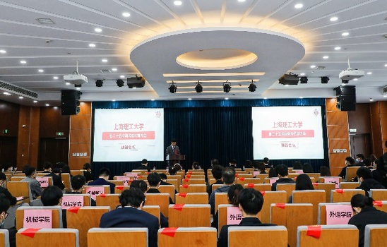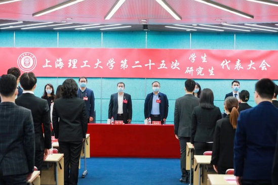 下午,在庄严的国歌声中9001cc金沙以诚为本第二十五次学生、研究生代表大会第一次全体会议正式开幕。校党委副书记、副校长盛春,研究生工作部部长彭宗祥,团委书记刘威,上海市学生联合会驻会执行主席关亦文,校学生会、研究生会秘书长刘婷,研究生会指导老师周锟广出席会议。来自各学院代表团的学生代表、上海市兄弟院校学生会的代表共同与会。