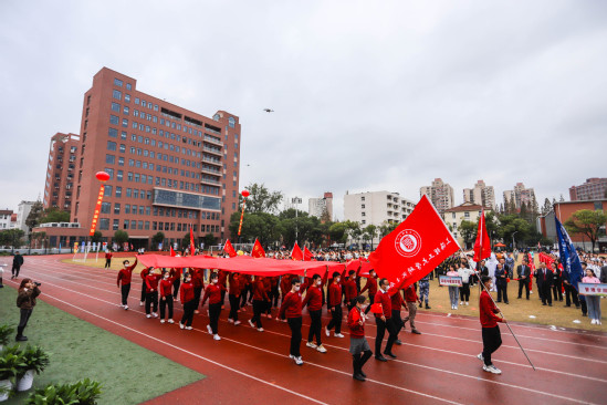 运动的激情驱散初冬的细雨,迸发的青春唱响时代的旋律。国旗仪仗队高擎鲜艳的五星红旗,正步走过主席台,伴随着激昂的运动员进行曲,来自各学院的代表方阵依次入场。他们精神饱满、英姿飒爽、昂首阔步,充分展现了上理师生开拓进取、奋勇拼搏的精神风貌。从容的微笑,整齐的步伐,传递青春的活力;嘹亮的口号,多样的展演方式,体现学院的特色。代表学校体育教学延伸的竞赛班和体育社团也在开幕式上进行了表演。
