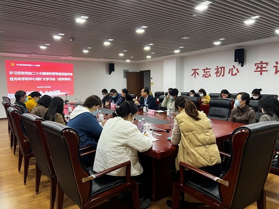 报告会后,学院在光电楼1042会议室召开了“学习贯彻党的二十大精神”校领导座谈宣讲会暨光电学院中心组扩大学习会(巡学旁听),副校长刘平出席并作座谈宣讲,宣传部副部长卢萧进行巡学旁听。学院党委中心组全体成员、教工支部书记参加会议。