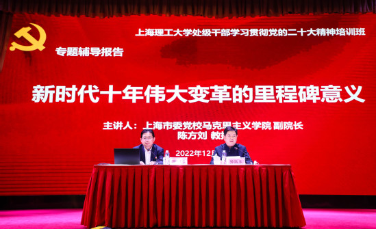 12月1日,上海市学习贯彻党的二十大精神专家宣讲团成员、上海市委党校陈方刘教授应邀为金沙官网处级干部学习贯彻党的二十大精神培训班作第六场专题辅导报告。学校全体处级干部、辅导员参加学习。报告会由学校党委副书记孙跃东主持。