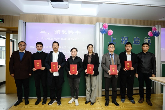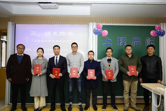 首届“上理启航”学生生涯导师共69位,均毕业于海内外知名高校,既有董事长、总经理等,又有千锤百炼的业界精英,行业分布囊括能源、制造、教育等基础领域,和人工智能、大数据、碳中和、医工交叉等新兴行业及交叉领域。学生工作处处长何炉进、研究生工作部部长彭宗祥为到场的贝圣颉等30位导师代表颁发聘书。