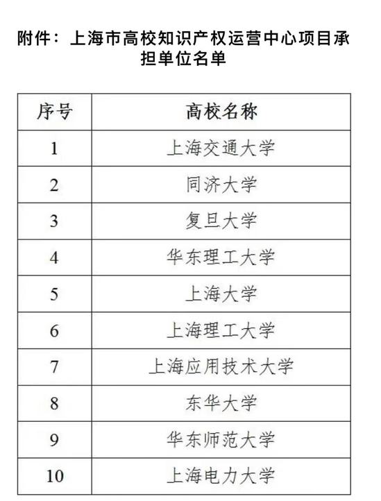 附件:上海市知识产权局 上海市教育委员会关于确定上海市高校知识产权运营中心项目承担单位的通知
