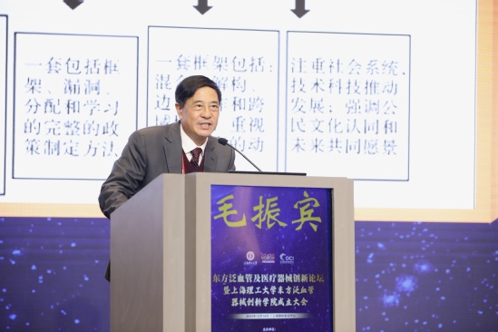 在随后举行的东方泛血管及医疗器械创新论坛上,葛均波、丁晓东以及国家药监局原国合司司长毛振宾分别以“泛血管疾病介入治疗的发展方向”“构建医工交叉创新的新格局 探索卓越医工创新研究的新路径”“新时代医疗器械监管科学创新发展的一些思考”为题做主旨报告,围绕创新人才培养、创新体系建设、技术成果转化等方向,共同就泛血管医疗器械的创新发展进行深入探讨。