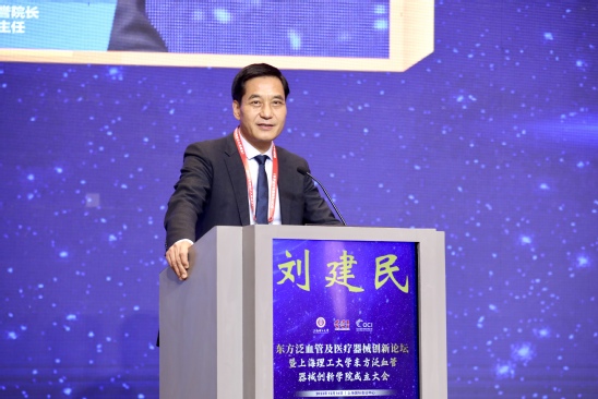 9001cc金沙以诚为本东方泛血管器械创新学院成立仪式上,海军军医大学第一附属医院脑血管病中心主任刘建民受聘为学院荣誉院长,中国科学院院士、复旦大学附属中山医院心内科主任葛均波受聘为学院院务委员会主任。