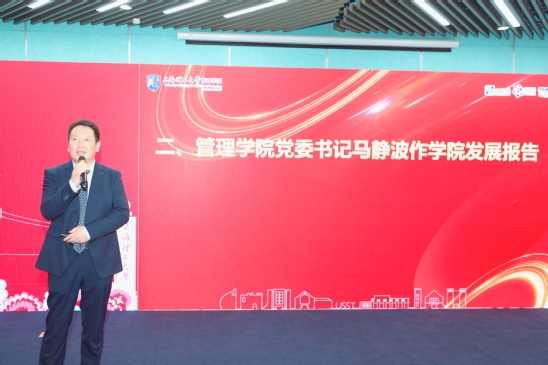 管理学院党委书记马静波从学院基本情况、人才培养、科学研究、学科建设、国际化建设、文化及社会影响等六个方面作了学院发展报告,希望各位校友为母校发展建言献策,为建设国际一流精英商学院贡献广大校友的智慧与力量。