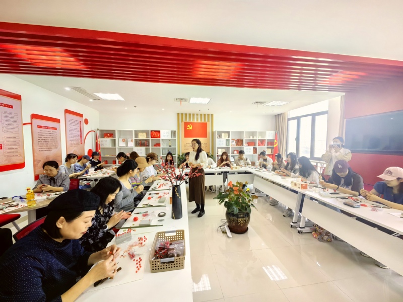 指导老师首先向师生介绍了面塑非遗文化的特点和历史。中国的面塑艺术早在汉代就已有文字记载,是集绘画、雕塑、刻印、装饰于一体的艺术,是体现中华传统美学的一种技艺,已被列入国际级非物质文化遗产。随后分解示范了面塑冬青艺术的基本手法,包括如何制作冬青红果、如何将一个个红果扎在一根根小的枝杈上、如何再将长短不一的裹满红果的枝杈缠绕在大的根枝上等等技法。在老师的指导下,师生将一团特制的红色面团仔细揉、捏、搓,变成一个个可爱的、精致的红果。当裹满红果的枝杈缠绕在大的根枝上时,一枝枝红彤彤、形态各异、形象栩栩如生的“面塑冬青”出现在自己的手中时,同学们互相观赏,成就感油然而生。