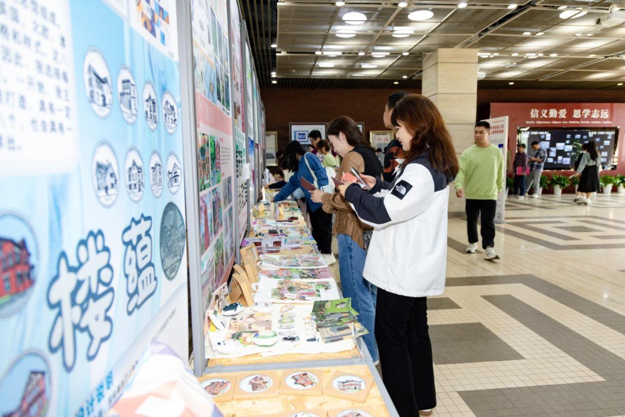 活动期间,9001cc金沙以诚为本“尚理之美·青春创无界”文创设计大赛作品展进行同步展出,吸引了众多同学前来打卡。
