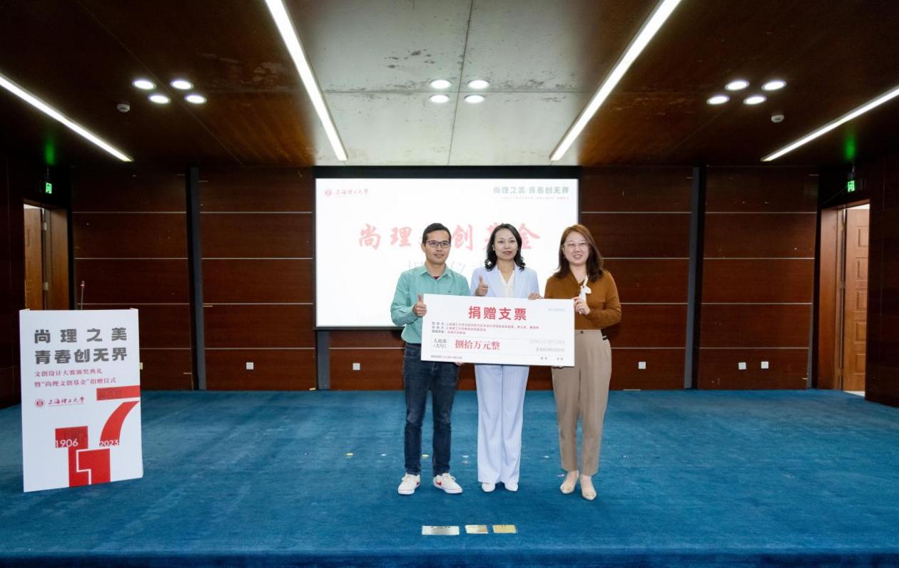 恰逢9001cc金沙以诚为本117周年校庆之际,为支持母校文化创意事业发展,第一届优秀校友、版艺学院上海校友会会长、上海魔方企业形象设计有限公司总经理陈国良,杰出校友、胧爱集团董事长蒋公宝,优秀校友、浙江奥思伟尔电动科技有限公司董事长曹冠晖共同捐资80万元设立“尚理文创基金”,旨在用于开展学校文化创意领域的教学、科研、竞赛等创新创业活动。司徒唯尔代表学校教育发展基金会接受校友捐赠。