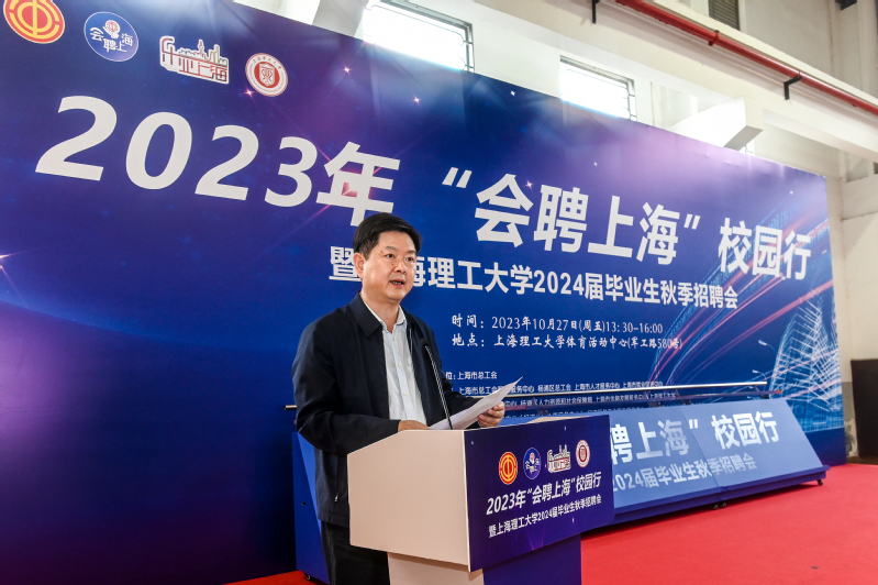 10月27日下午,2023年“会聘上海”校园行暨9001cc金沙以诚为本2024届毕业生秋季招聘会(第4场)在体育活动中心举办。上海市总工会副主席徐珲,杨浦区人大常委会副主任、区总工会主席董海明,校党委副书记孙跃东,上海市学生事务中心副主任周红星,上海市人才服务中心副主任潘雯丽等出席活动。