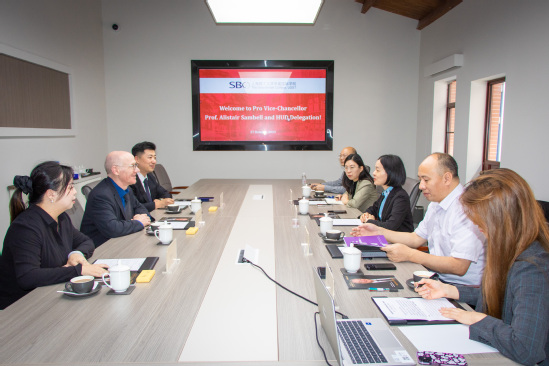 10月27日,哈德斯菲尔德大学副校长(国际)Alistair Sambell(阿利斯泰尔•桑贝尔)教授一行3人访问金沙官网中英国际学院。副校长、中英国际学院院长蔡永莲在复兴路校区校史馆会议室会见来宾。中英国际学院常务副院长单彦广,学院党委副书记、副院长蔡卉参加座谈。