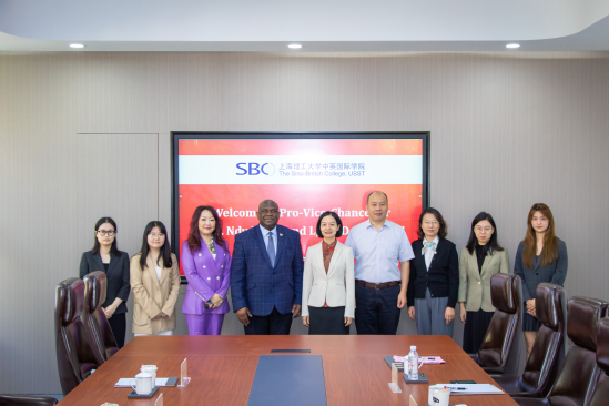 10月30日,利物浦约翰摩尔大学副校长Ndy Ekere(恩迪•埃克雷)教授、国际关系部总监王懿博士一行4人访问中英国际学院。金沙官网副校长、中英国际学院院长蔡永莲在学院行政楼会议室会见来宾。中英国际学院党委书记李妍,常务副院长单彦广,党委副书记、副院长蔡卉参加座谈。