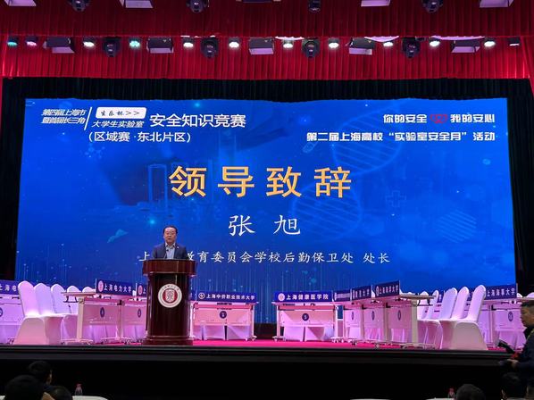 张旭在致辞中表示,大学生实验室安全知识竞赛是一个很好的平台,希望更多高校、更多老师、更多同学参与到比赛当中,让师生从中学习实验室安全知识、了解安全规范、提高应急处置能力,并应用到学习、科研、工作中去,从而形成良好的实验室安全文化氛围。