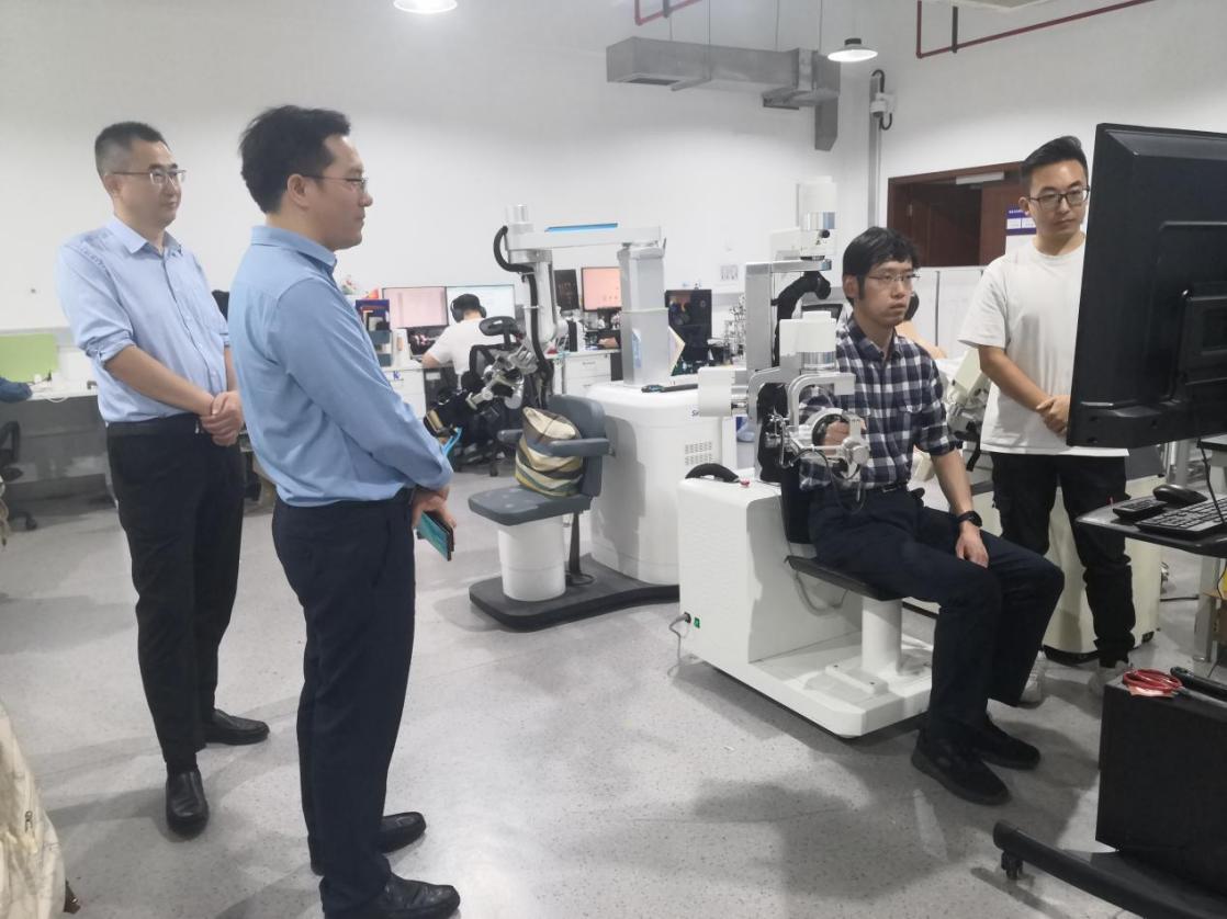 会前,上海市生物医药产业促进中心一行参观了学校上海康复器械工程技术研究中心实验室。