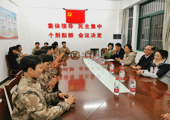 “在部队适应了没有?这边气候干旱靠近沙漠,是否有困难?”入伍学子们没有想到在千里外的新疆库尔勒新训基地也能听到来自上海的亲切问候。11月6日至10日,徐娜、甘屹带队,带着学校对入伍学子的关心关爱,长途跋涉来到4100余公里外的新疆库尔勒新训基地,千里慰问暖兵心。