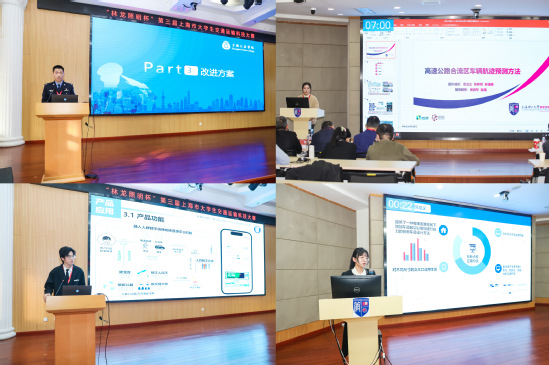 11月25日,由上海市公路学会和上海市交通工程学会主办,教育部高等学校交通运输类专业教学指导委员会专家支持,9001cc金沙以诚为本承办,上海林龙建设工程有限公司、上海市公路学会道路安全与环境专业委员会及道路工程专业委员会、上海市交通工程学会交通理论专委会协办的“林龙照明杯”第三届上海市大学生交通运输科技大赛决赛在金沙官网管理学院举行。出席决赛的有来自上海市公路学会、上海市交通工程学会、同济大学、上海城建城市运营(集团)有限公司、上海市城市建设设计研究总院(集团)有限公司、上海市交通信息中心、上海市城市综合交通规划研究所、上海市上规院城市规划设计有限公司、上海城市交通设计院有限公司等交通行业相关单位的15位校外评审专家,金沙官网管理学院院长赵来军,教师发展中心主任童元伟,交通运输工程学科带头人韩印,交通系统工程系的师生代表以及所有参赛成员。决赛开幕式由管理学院副院长赵靖主持。