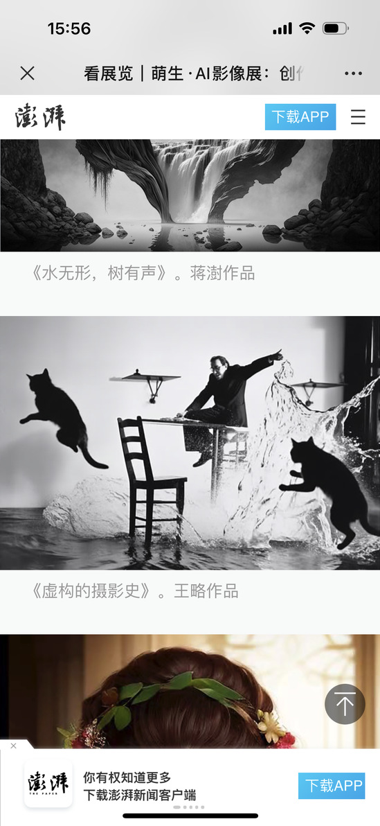 今年八月,由上海摄影家协会与上海市国际贸易促进会主办联合主办的“萌生·AI影像展”在上海浦东新国际博览中心开幕,是迄今上海规模最大的AI影像艺术展,现场盛况空前,《虚构的摄影史》在展览中首次亮相,并被澎湃新闻、文汇、新民、上观等多家媒体报道。