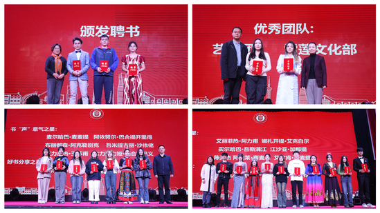 表彰环节,出席晚会的领导和嘉宾为新一届的玛丽亚民族团结教育工作室学生主席团颁发聘书,并为在过去一年中民族团结、学习进步、无私奉献等方面有突出表现的学生颁发荣誉证书。