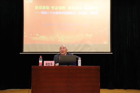 杨佐平为学员作题为“自信自强 守正创新 踔厉奋发 勇毅前行——党的二十大报告中的新观点、新论断、新思想”的专题辅导报告。他围绕党的二十大的一个“新”,结合自身的求学之路和当下的国家实际,从生态文明、国家安全、政治制度等角度展开,带领学员回顾两个百年奋斗目标和“三个务必”的内涵,要求广大青年要坚定不移听党话、跟党走,怀抱梦想又脚踏实地,敢想敢为又善作善成,不断提升个人的素养和能力,用实际行动做推进中国特色社会主义建设的栋梁之材。
