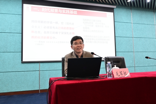 12月1日下午,金沙官网2023年研究生党团骨干培训班开展以“深刻理解习近平新时代中国特色社会主义思想”为主题的理论学习专题报告,报告邀请上海市委党校毛军权教授主讲,外语学院党委副书记金小东主持报告会。