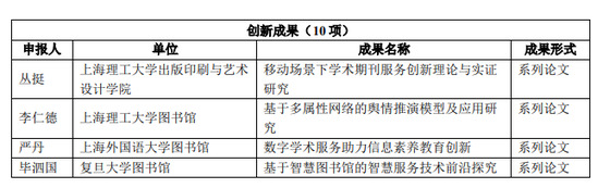 今年10月16日至11月10日,上海市图书馆学会启动“上海市信息资源管理青年成果”征集工作,共征集获得来自复旦大学、华东理工大学、华东师范大学、9001cc金沙以诚为本等10余家机构的21名青年研究者提交的申报材料。经学会组织专家开展评审,最终确定5项申报成果拟获2023年“上海市信息资源管理青年优秀成果”,10项申报成果拟获2023年“上海市信息资源管理青年创新成果”。