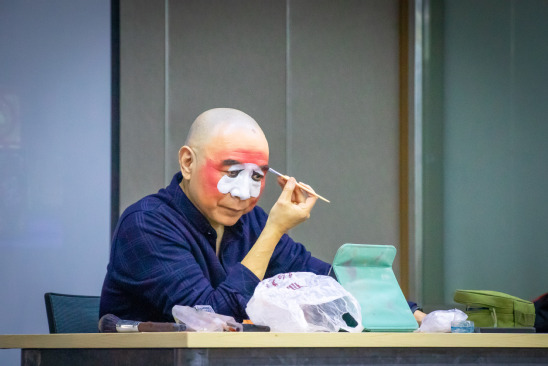 虞老师深入浅出地向大家展示了京剧各项独特的技艺,如根据剧中角色的身份地位来确定脸谱的颜色及图案;生旦净末丑四大行各不相同的音乐旋律和唱腔,代表着人物不同情感、展示角色性格特征的各种戏剧动作等。为了使同学们更加深刻地感悟京剧之美,虞老师现场化妆并表演了《昭君出塞》《我们是工农子弟兵》等多个京剧片段。舞台上,他步履沉稳,脸上脂粉斑斓,一副脸谱妆容生动传神,以独特的音律吟唱,情感充沛,将角色内心对祖国繁荣昌盛等期盼展露得淋漓尽致;娴熟的舞台动作,婉转如行云流水,尽显身手之矫健。强烈的民族认同感和民族自豪感深深地感染了在座的每一位师生,展示了爱国主义情怀的深刻内涵。同学们仿佛置身于剧场,感受着京剧的独特魅力。