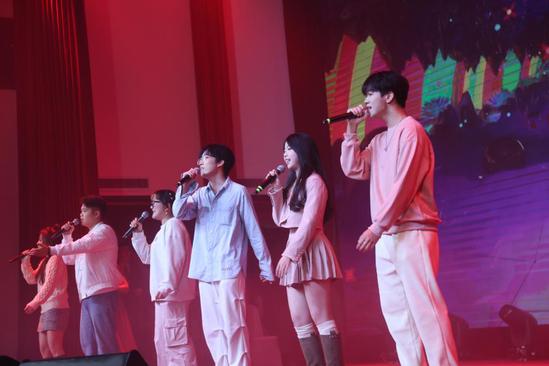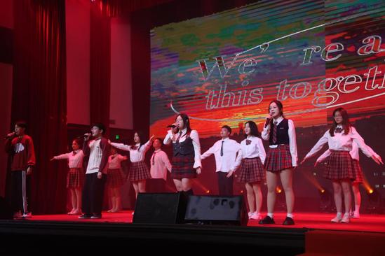 在说唱歌曲《下一段旅程》的旋律中,整场晚会进入了“圆梦”篇章;诗朗诵《我们的青春》以穿越百年的对话的形式向观众诠释青春的模样;歌舞《We're all in this Together》与合唱曲目《仰望星空》再次向全场观众展现了健康学子的青春活力,也为整场晚会画上圆满的句号。