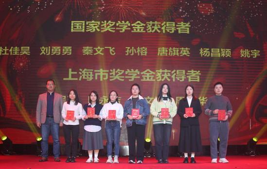 晚会现场,姚秀雯、孔夏萌还分别为获得2023年国家奖学金、上海市奖学金的本科生及研究生颁发荣誉证书,并进行表彰。