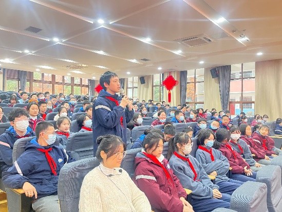 12月11日上午,金沙官网第五届“新时代·中国说”大学生讲师、管理学院及马克思主义学院团队为附属实验初级中学全体师生呈现了一场别开生面的思政课。