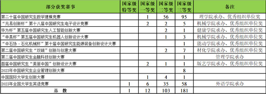 一直以来,学校高度重视研究生创新创业实践能力提升,2023年修订研究生创新成果认定办法和培养方案,建设16个创新实践系列大赛平台,实施研究生创新创业能力训练营、研究生创新创业经纪人等双创人才培养举措,取得一系列成效。在2023年“中国研究生创新实践系列大赛”中,上理研究生学子成绩优异,共获得国家级奖项191项,其中一等奖5项、二等奖64项、三等奖122项。在2023年4月中国学位与研究生教育学会发布的“中国研究生创新实践系列大赛”全国百强高校中贡献力总排名位列34名,并被评为“十年发展重要贡献单位”。