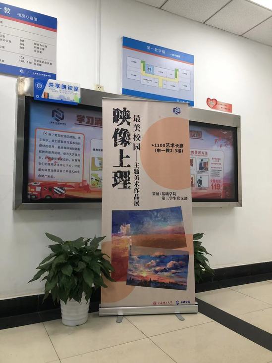 本期“映像上理·最美校园”主题画展,是1100艺术长廊美术作品首秀,这些作品均为2023级大一学生原创,充满勃勃生机。学院期望借助1100艺术长廊,打造美育实践基地和品牌,实现“环境育人,空间育人”,在潜移默化中以美启真、以美怡情、以美达善,提升基础学院学生的审美情趣和人文素养。