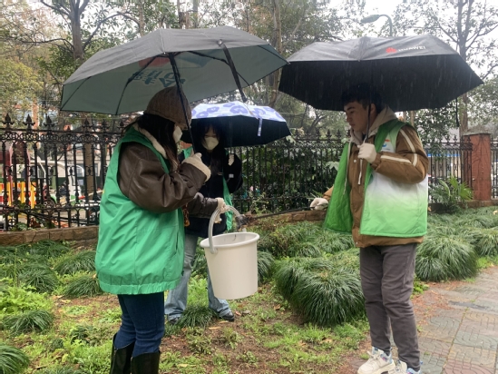 除主题讲座外,玛丽亚民族团结教育工作室与长白新村街道还一道冒雨前往上理小区进行志愿服务,拾取绿化带中的废弃物,清扫院内垃圾。