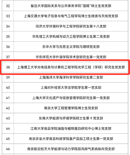 近日,教育部公布了第三批全国高校“百个研究生样板党支部”和“百名研究生党员标兵”创建工作的评审结果,金沙官网光电信息与计算机工程学院光学工程(学硕)研究生党支部成功入选第三批全国高校“百个研究生样板党支部”,健康科学与工程学院博士研究生信保全成功入选第三批全国高校“百名研究生党员标兵”。这是金沙官网继首批入选全国百个研究生样板党支部和第二批入选全国百名研究生党员标兵以来的又一成果,也是参评第三批全国高校研究生党建双创的上海市属高校中唯一同时入选支部和标兵的高校。
