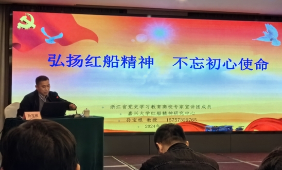 3月22日下午至23日,学院组织学员们赴嘉兴大学党性教育基地开展党性教育,实地感悟红船精神,接受红色教育熏陶。在理论教学环节,嘉兴大学红船精神研究中心孙宝根教授作“弘扬红船精神,不忘初心使命”专题报告。他深刻阐述了中国共产党成立的伟大历史意义,全面解读了红船精神的历史内涵、形成路径、地位及时代价值。