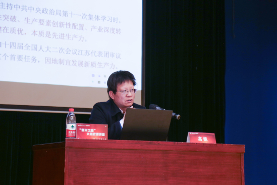今年全国两会期间,“新质生产力”霸屏两会热词;在2024年政府工作十项任务中,“大力推进现代化产业体系建设,加快发展新质生产力”位居首位。高等教育作为畅通教育、科技、人才良性循环的关键汇聚点,是推动社会生产力发展的基础性环节。基础学院为深入学习领会习近平总书记关于发展新质生产力的重要论述精神,落实好学校培养高质量装备制造业人才的工作任务,3月27日,邀请上海市学习贯彻党的二十大精神宣讲团宣讲专家、复旦大学经济学院博导高帆教授,为学院300余师生作专题报告“新质生产力:理论阐释与发展路径”。