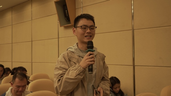 交流期间,李涵以“初到上理”“扎根上理”“破土而出”三部分内容向同学们分享了自己从大一到博士的学习与科创经历,生动地再现了个人参加科创竞赛时的思想经历和努力过程,并以自身经历鼓励2023级新生始要终保持热爱,不断追求卓越与真知。