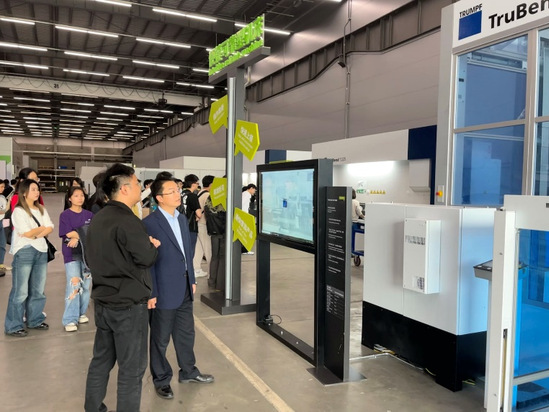 中德国际学院师生一行先后参观了娄江新城展示馆、中德产业园及机床、激光技术以及电子领域的高科技公司——通快(中国)有限公司、致力于立式加工中心及车削中心研发制造的全球化公司——巨浪凯龙机床(太仓)有限公司及水景行业的创新领导者——欧亚瑟水艺(太仓)有限公司等德资企业。在展示馆,邓华民介绍了太仓市发展规划、与德国合作的历史以及德企在太仓投资兴业的情况,号召学生到太仓就业创业实习实践。