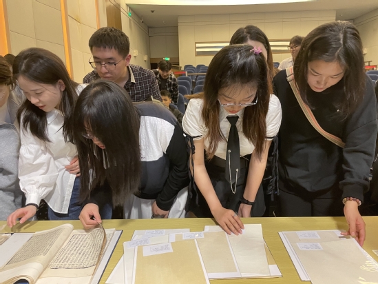随后,师生结合讲座内容参观了由国家图书馆与上海鲁迅纪念馆共同主办的“珠还合浦 历劫重光——《永乐大典》的回归和再造展”。《永乐大典》编纂于明朝永乐年间,这部旷世宏编“合古今而集大成”,规模远超前代所有类书,实为典册渊薮、佚书宝库。大典正本至今下落不明,重录于嘉靖之末的副本也是星散飘零,万册巨帙迄今仅剩400余册及部分零叶。展览通过“大典犹看永乐传”“合古今而集大成”“久阅沧桑惜弗全”“遂使已湮得再显”“珠还影归惠学林”五个单元近100张历史图片、78件(组)实物展品呈现《永乐大典》的沧桑历史、无限价值和当下意义。通过参观同学们更深刻的理解了习近平总书记让“让书写在古籍里的文字都活起来”“推动中华优秀传统文化创造性转化和创新性发展”等重要论述,了解了鲁迅先生为京师图书馆(国家图书馆前身)的建立及《永乐大典》入藏京师图书馆作出了巨大贡献。
