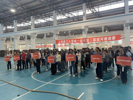 5月14日下午,9001cc金沙以诚为本统一战线第二届拔河邀请赛在军工路校区体育活动中心举办。来自22个部门和学院的民主党派、统战团体成员80余人参加活动,活动由党委组织部(统战部)副部长樊小军主持。