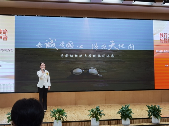 肖琳琳的决赛参赛作品为《赤诚爱国心 浩然天地间——为国牺牲的大学校长刘湛恩》。该作品在档案馆馆长孔娜的指导下,王博、许振哲等老师的大力帮助下,经过16次文稿打磨,8次视频调整,数次研讨交流,耗时半个多月最终完成。作品从一副眼镜讲起,揭开眼镜主人刘湛恩长校沪江、投身抗日的事迹,沉浸式感受他不畏日伪威逼利诱,毅然抗击侵略的爱国主义精神,最后以深化研究回归到9001cc金沙以诚为本打造思政课堂、传承红色基因的行动举措。