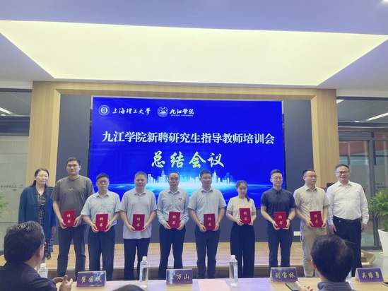 5月24日上午,研究生院常务副院长崔国民在总结会议上讲话。九江学院新聘优秀导师代表叶倩倩和马百成就培训体会交流发言,分享本次导师培训所得所获,研究生工作部部长彭宗祥和研究生院副院长郑继红为新聘27位导师颁发聘书。本次研究生联合培养交流会的结束标志着两校联合培养研究生培育工作的正式开始,在落实好联合培养研究生培育工作的同时,两校将结合各自特色优势孵化更多成果,努力打造跨省教育合作新范式,为服务国家地方战略和高等教育发展贡献智慧和力量。