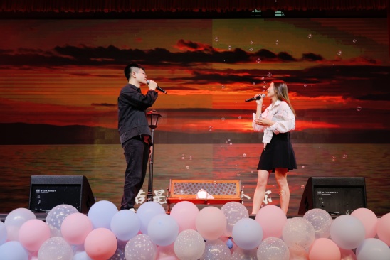 在第一篇章“时光流转·梦想启航”,开场曲《夜色滚烫》,歌手嗓音磁性而深情,每一个音符都如同细水长流般触动人心。古典舞《折柳》的表演如诗如画,随着悠扬的古乐响起,舞者以曼妙的身姿步入舞台中央,仿佛从古老的画卷中走出,每一个动作都充满了古典的韵味和优雅。来自华东理工大学的两位同学带来歌曲《胡广生》,他们的声音清澈且富有力量,是对生活的思考也是对未来的期待,让人沉浸其中。小品《快把时间还给我》,节目以大学宿舍为场景,通过表演者们与手机程序的互动,以诙谐幽默的方式揭示了时间管理的重要性,展示出上理研究生们正是擅于使用时间这件利器,才能跑出令人惊叹的上理速度。歌曲《那个女孩》,旋律优美动人,研究生的三年又给上理的学子赋予了怎样的情感,无论在哪,一定会有一个人永远坚定地站在你我身旁。中场的游戏环节更是活跃了全场的气氛。游戏根据大家常用的表情包猜出其中的台词,经过多轮激烈的角逐,成功猜出了多个表情包台词的观众,获得了精美的纪念品。