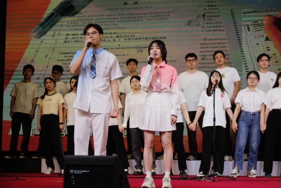 在第三篇章“逐梦前行·未来可期”,这里由一场精彩的舞蹈串烧开始,多支风格迥异的舞蹈作品,有动感十足的街舞、优雅飘逸的现代舞、充满活力的校园舞蹈等,节目巧妙地将不同的舞蹈元素融合在一起,为观众们送上一场视觉与听觉的盛宴。手持吉他的歌手仿佛就是那位在茫茫大海上孤独航行的船长。随着他轻轻拨动琴弦,那首充满情感的《船长》便缓缓流淌出来,歌词中的每一句都仿佛是对毕业生们在沪江园三年的深情回顾,如今,他们即将离开这个熟悉的港湾,开始新的远航。将现代说唱与传统武术巧妙融合的《庆功酒》,不仅展现了上理学子的青春活力,也彰显了中华文化的博大精深,一旁穿着武术服的同学双手拿着双截棍,一招一式都透露出深厚的武术功底,两种看似截然不同的艺术形式却在舞台上相互呼应。晚会在研究声合唱团演唱的毕业歌曲《我们都拥有海洋》中缓缓落下帷幕。