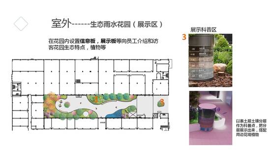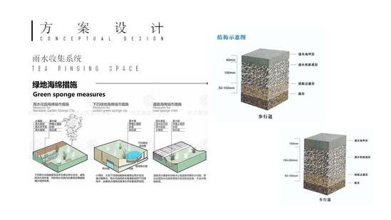 “梅雨天气,雨水连绵,这个地方雨天常常有道路积水。”学生针对调研中发现的道路积水问题,深入研究雨水花园营造技术,进一步合理组织场地功能,结合植物种植设计,在提升场地视觉品质的同时实现了对雨水的有效管理。