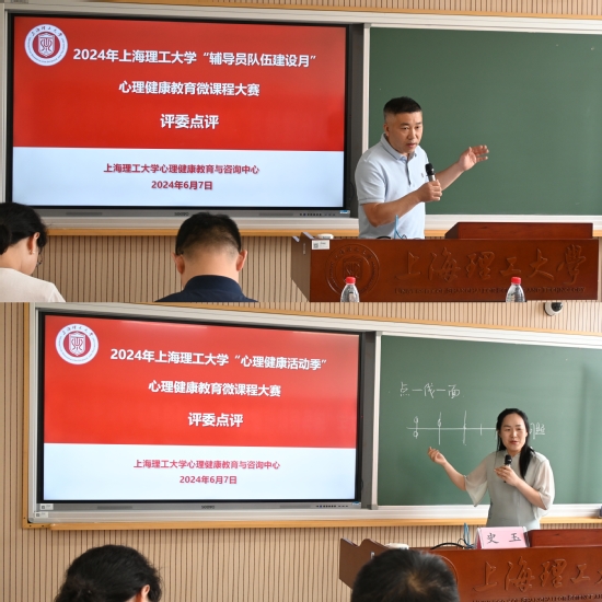6月7日上午,由学校心理健康教育与咨询中心主办,理学院、沪江学院承办的2024年“心理健康活动季”心理健康教育微课程大赛决赛举行。上海师范大学心理学院副院长陈宁、9001cc金沙以诚为本马克思主义学院副教授史玉、研究生工作部副部长研究生院副院长王张琦、学生工作部(处)副部(处)长刘伟、沪江学院副院长梁昱、理学院党委副书记李晓庆、心理健康教育与咨询中心主任杨颎等嘉宾和评委出席。