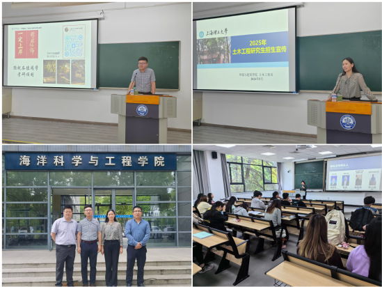 2024年5月底,土木工程系系主任张治国,系党支部书记李秀君,系副主任张菊辉,青年教师王苏然、崔纪飞等开展了多场线下招生宣讲会,先后走访了上海师范大学、上海应用技术大学及上海海事大学。